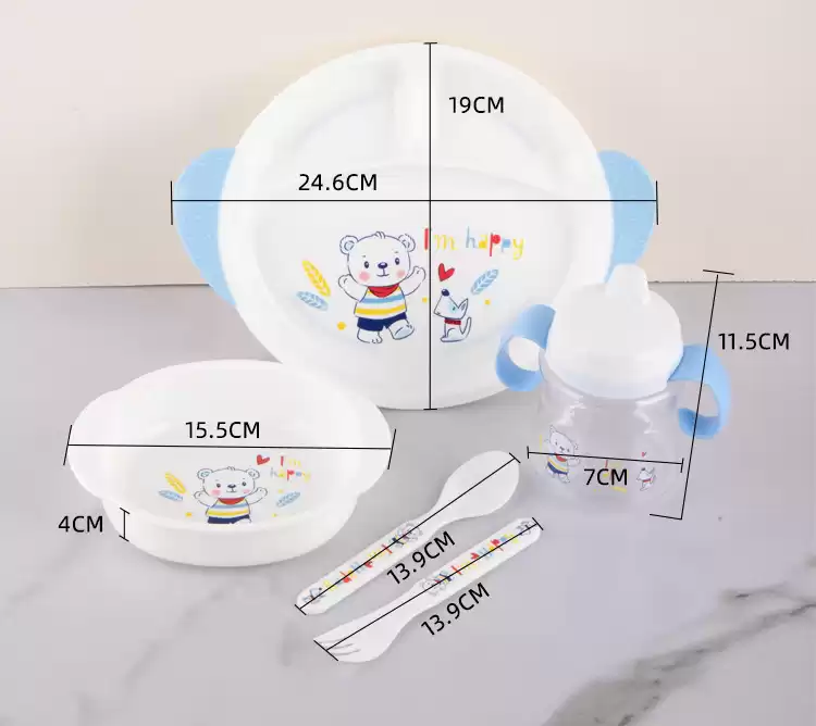 Детский набор для кормления (тарелка, миска, кружка, ложка и вилка) applebear, Модель CC1849_WYZ8521, Материал Полипропилен