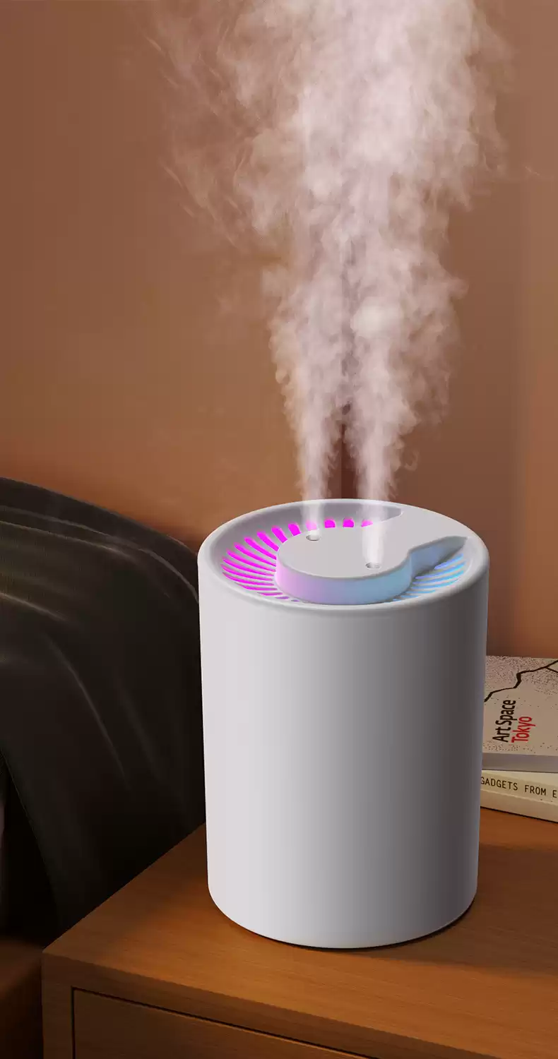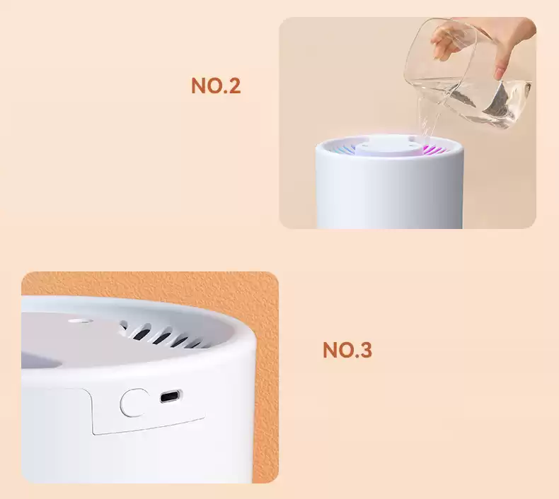 1.Верхний долив воды 2.Работа от аккумулятора до 50 ч.3.Объем резервуара — 5 л 4. Макс. увлажнение воздуха (мл/ч)-50 5.Подсветка корпуса 6.Тип воздухоувлажнителя:ультразвуковой 7.Максимальный уровень шума:36 дБ, Максимальный уровень шума: 36