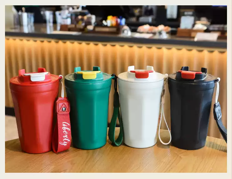 Термостакан с ремешком от марки TIANNUO предназначен для многоразового использования. Удобно брать горячие и холодные напитки с собой в дорогу, на работу. Благодаря клапану термостакан сохраняет напиток горячим и не дает напитку расплескаться по пути. Более экологичная альтернатива одноразовым стаканчикам для кофе. Выполнен из полностью безопасных пищевых материалов, отлично впишется в интерьер для вашего дома. Если вы - любитель кофе, то вы не должны пропустить его!!Не использовать в микроволновой печи, посудомоечной машине!