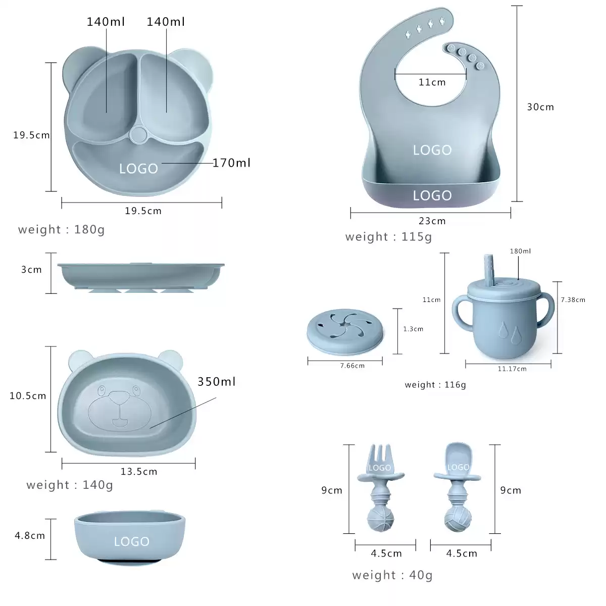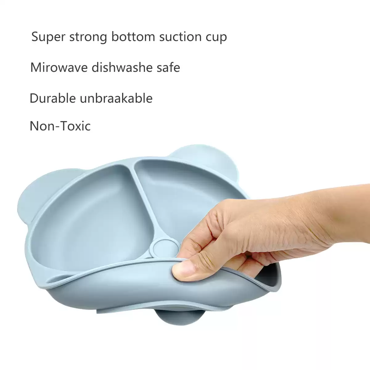 Силиконовая посуда для кормления детей от марки MIX – это настоящая находка для каждой мамы, которая помимо основных своих функций может стать идеальным подарком для малышей и их родителей. Набор посуды для малышей включает в себя все самое необходимое для кормления деток. Секционная на присоске тарелка выполнена в форме “медвежонок”, удобная присоска на дне тарелки обеспечивает противоскользящий эффект и очень крепко держится на поверхности столика для кормления детей. Вся посуда для кормления выполнена из 100% пищевого силикона, очень гибкая, без риска повреждений и битья, в отличии от стеклянной посуды.