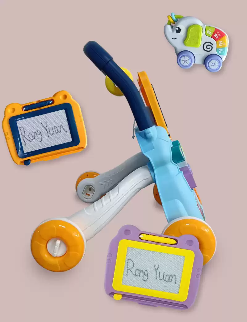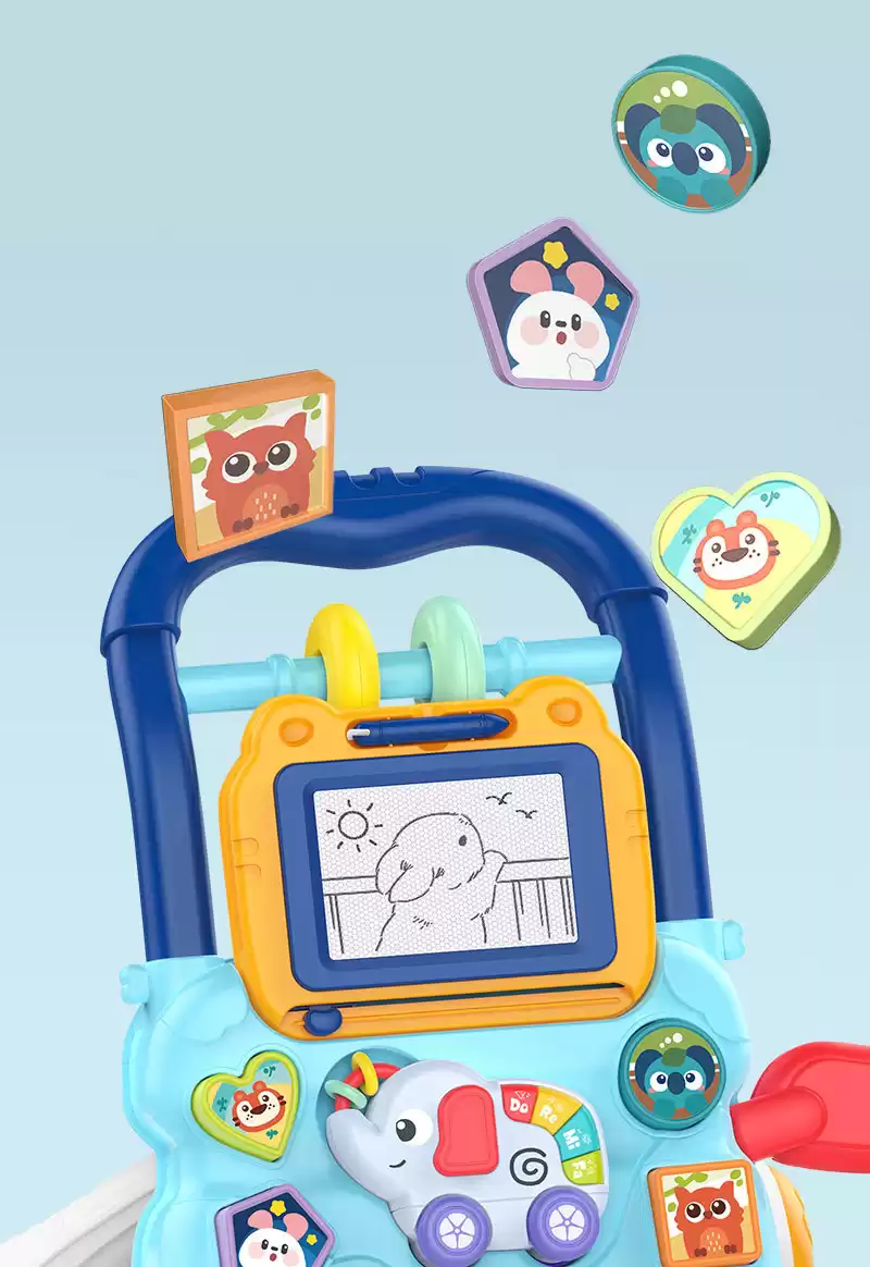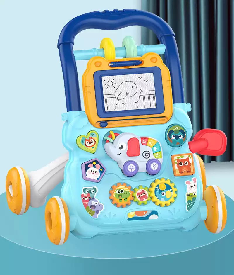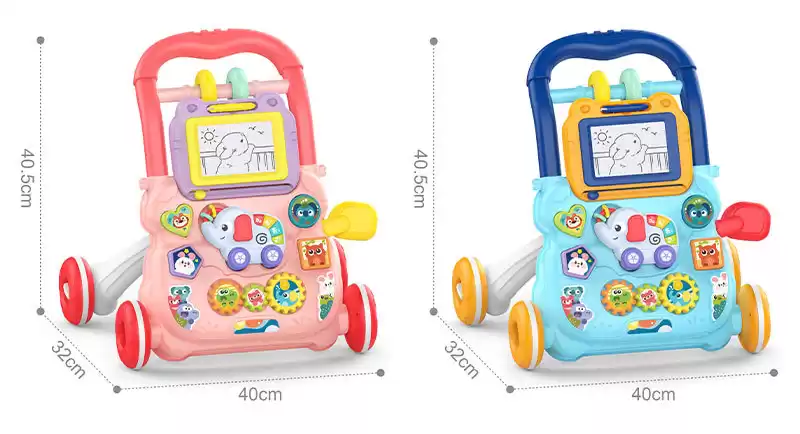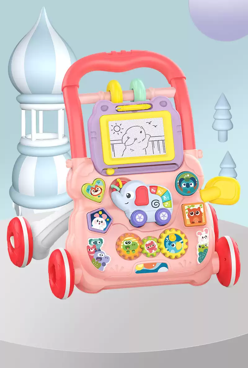 Ходунки с игровой панелью для малышей выполнена в красивой и приятной расцветке, изготовлена из прочных и безопасных материалов, колеса толстые и устойчивые, ручка удобная.