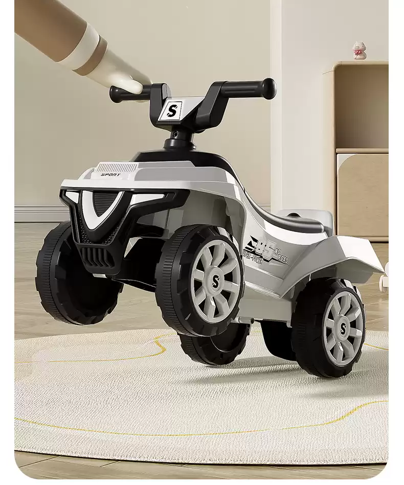 Детская машина каталка изготовлена из прочного пластика, который не деформируется при столкновении с препятствием.