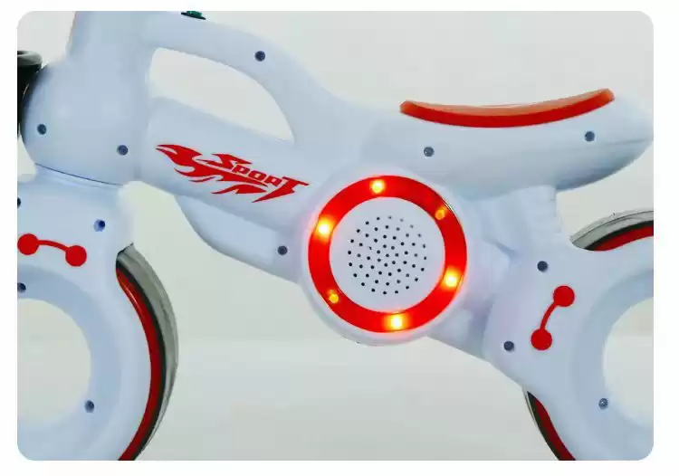 Мотобайк также оснащен световыми и звуковыми эффектами, что добавляет веселья в каждую поездку.