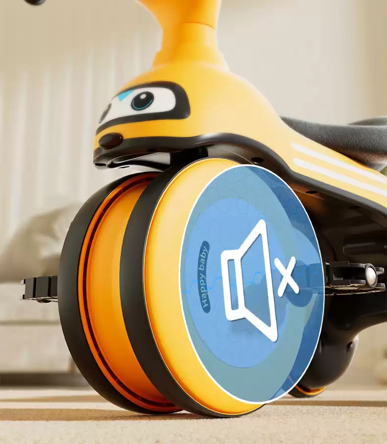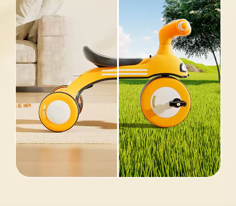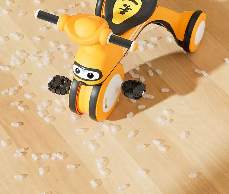 Беговел имеет четыре колеса для дополнительной устойчивости при стоянке и во время игры.
