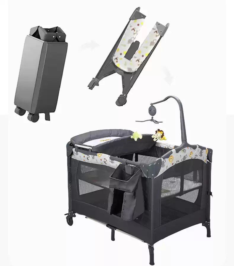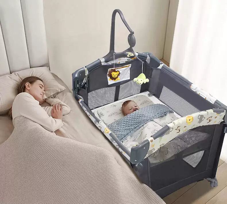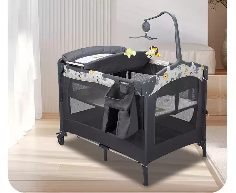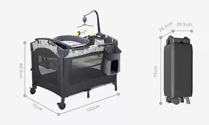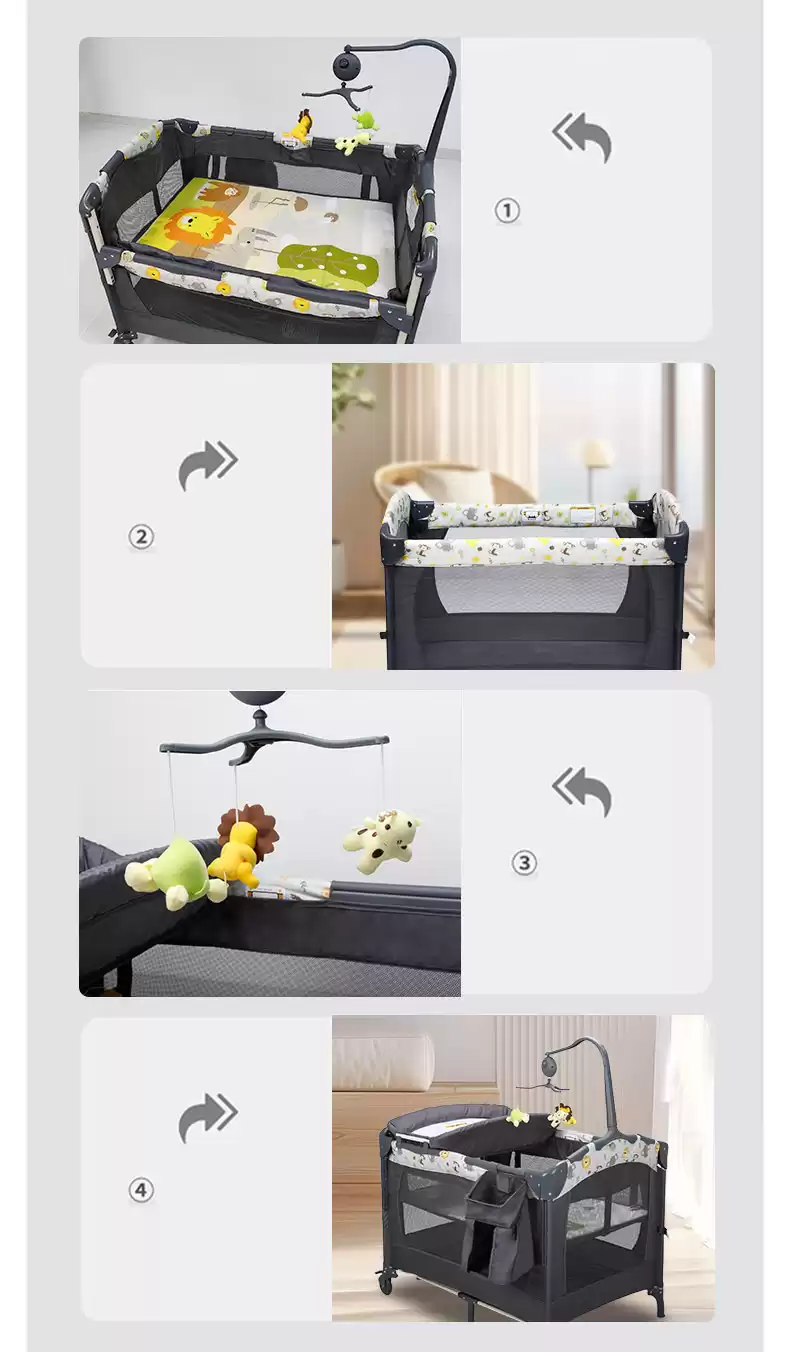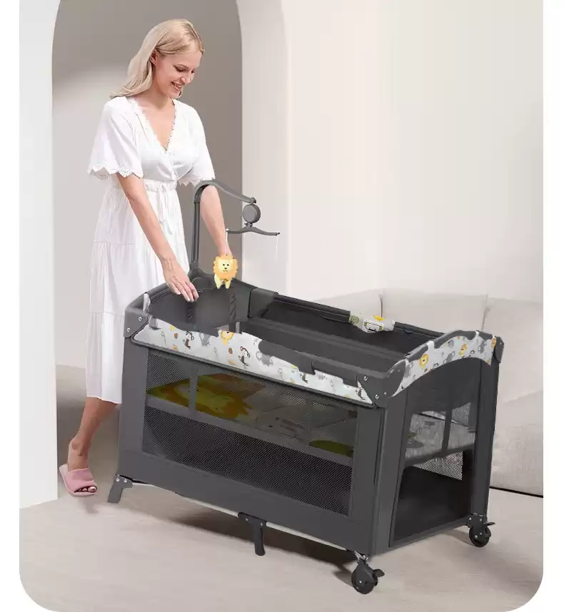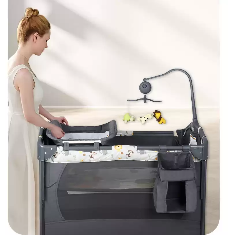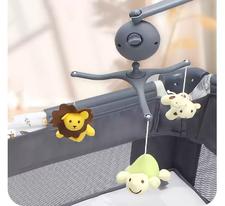 4.Манеж-кровать оснащен полкой для игрушек с музыкальным блоком.