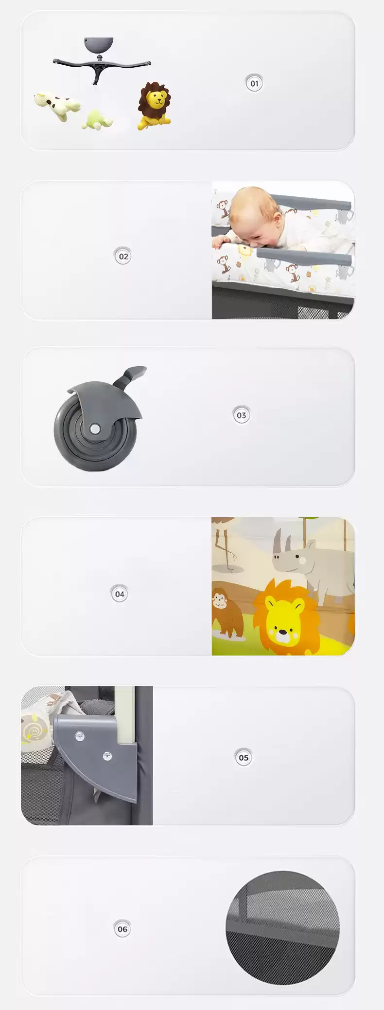 5.Колесики обеспечивают мобильность, что позволяет присматривать за малышом в любом месте.