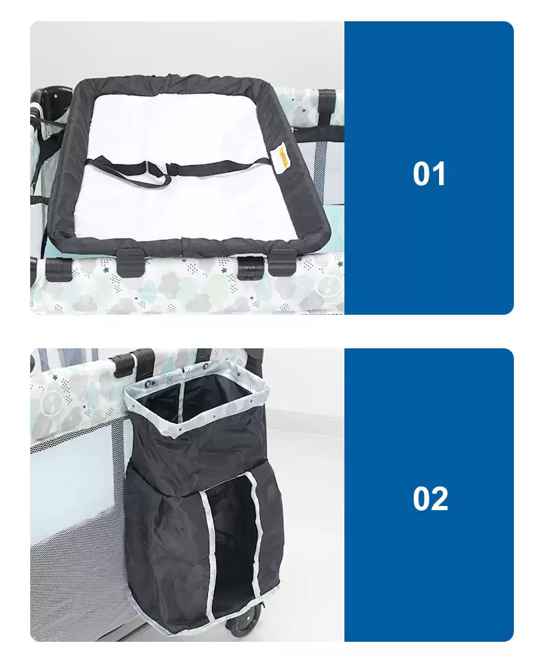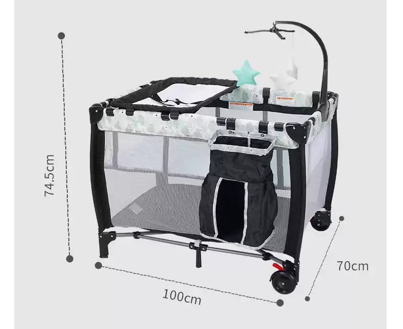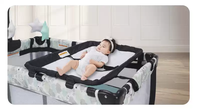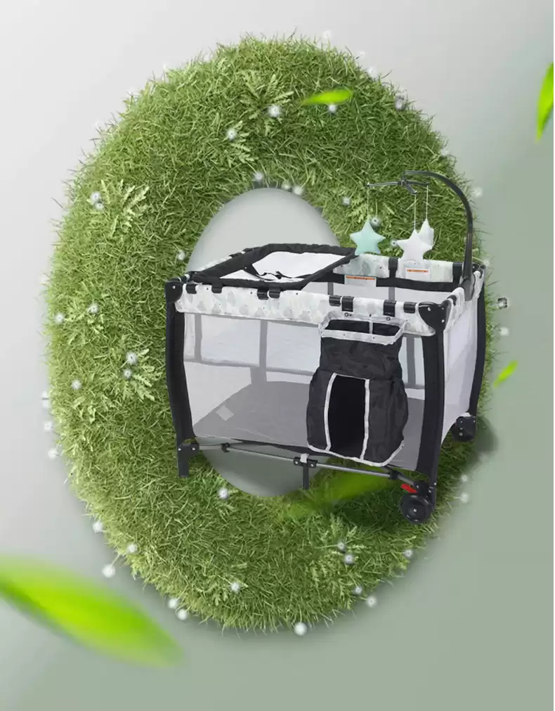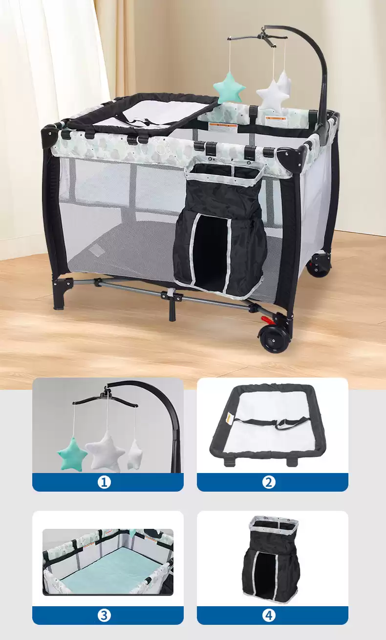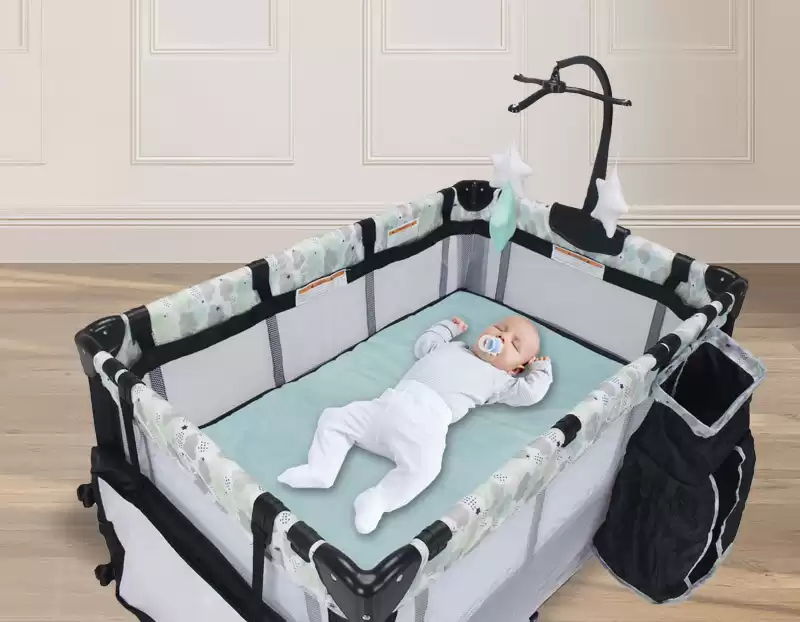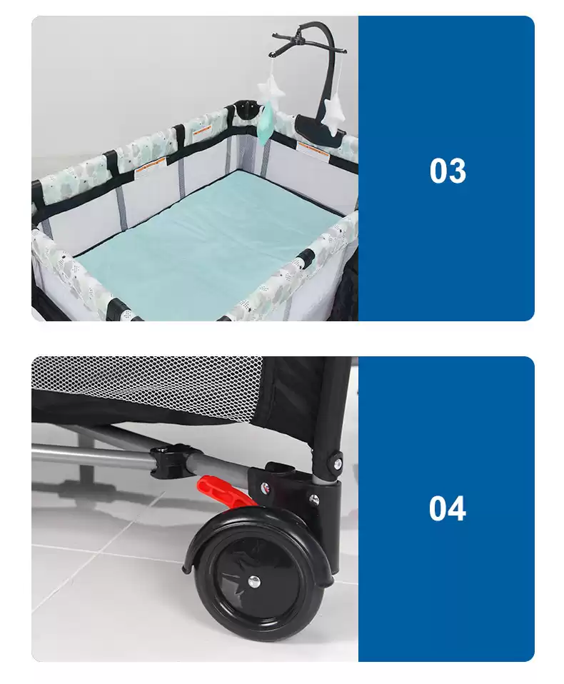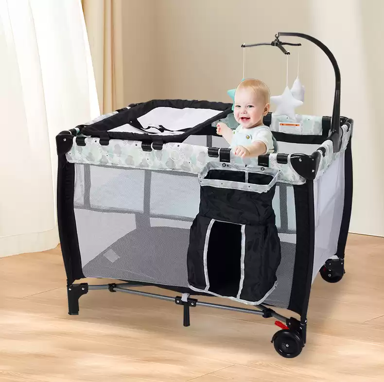 Колесики позволяют перемещать манеж-кроватку по дому.