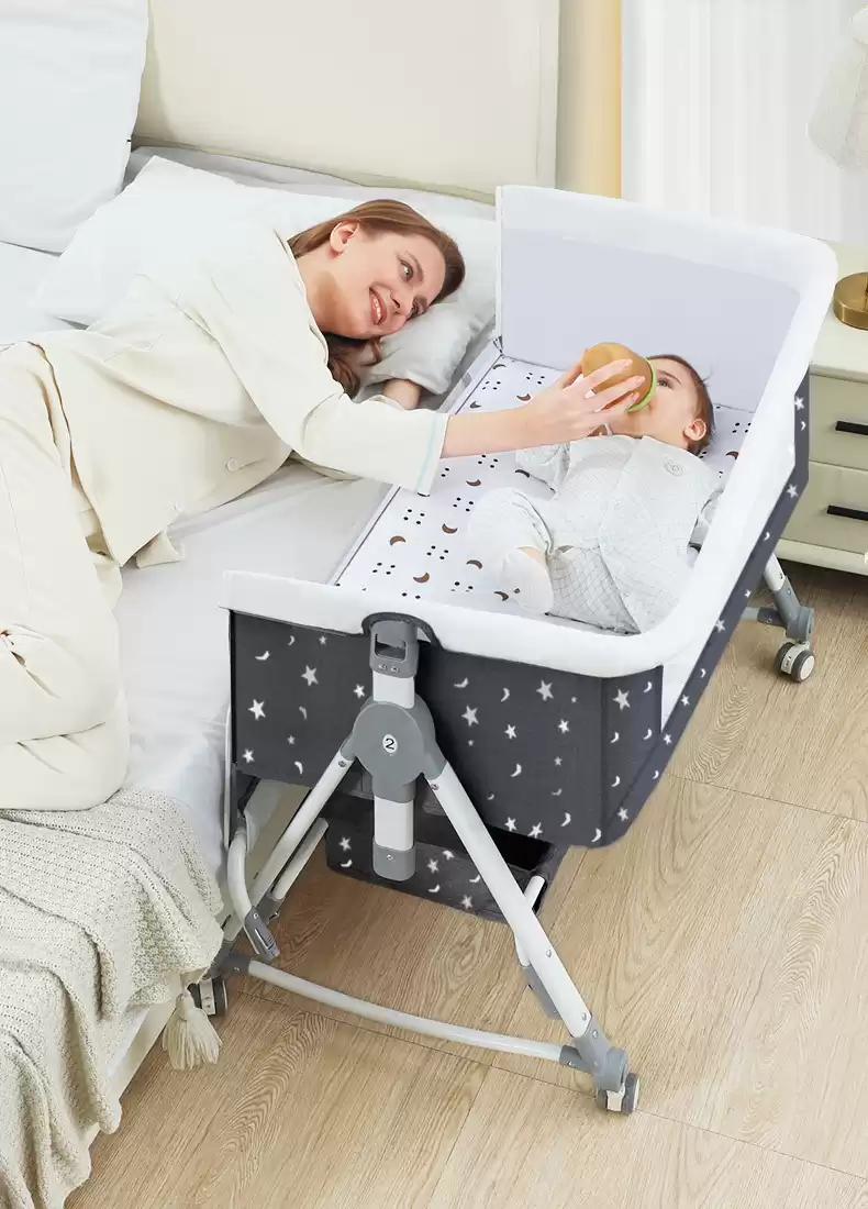 Москитная сетка убережет вашего ребенка не только от насекомых, падающую из окружающего пространства, служит для фильтрации воздуха. Модель оснащена колесами, что делает его мобильной и легкой в использовании. Колыбель-кроватка имеет функцию быстрого складывания и раскладывания.