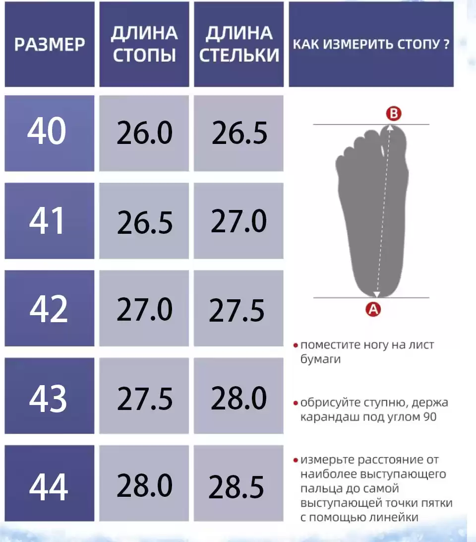 • Длина стельки 25-25.5-26-26.5-27