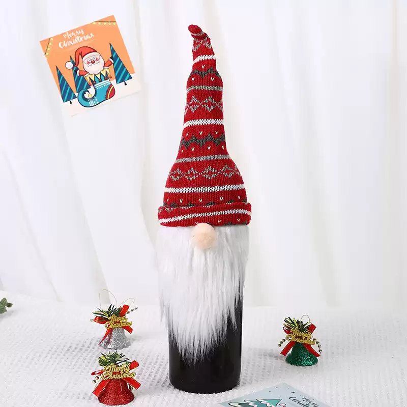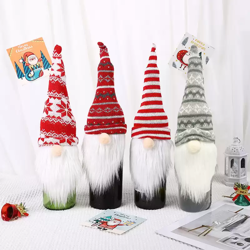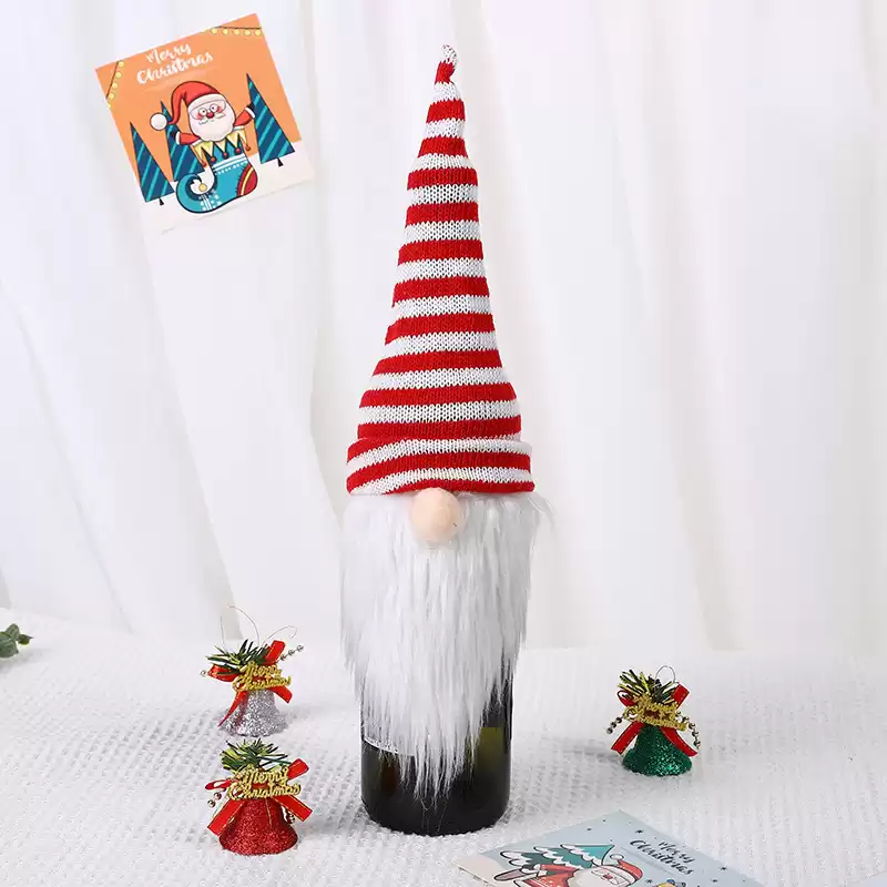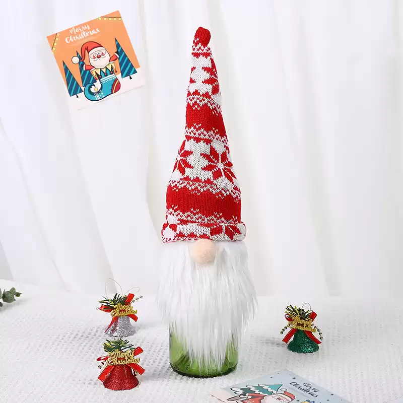 Праздничное украшение: Наш колпачок для бутылок, оформленный безлицым гномом в вязаной шапочке, добавляет веселую и праздничную атмосферу вашим бутылкам с вином и шампанским.