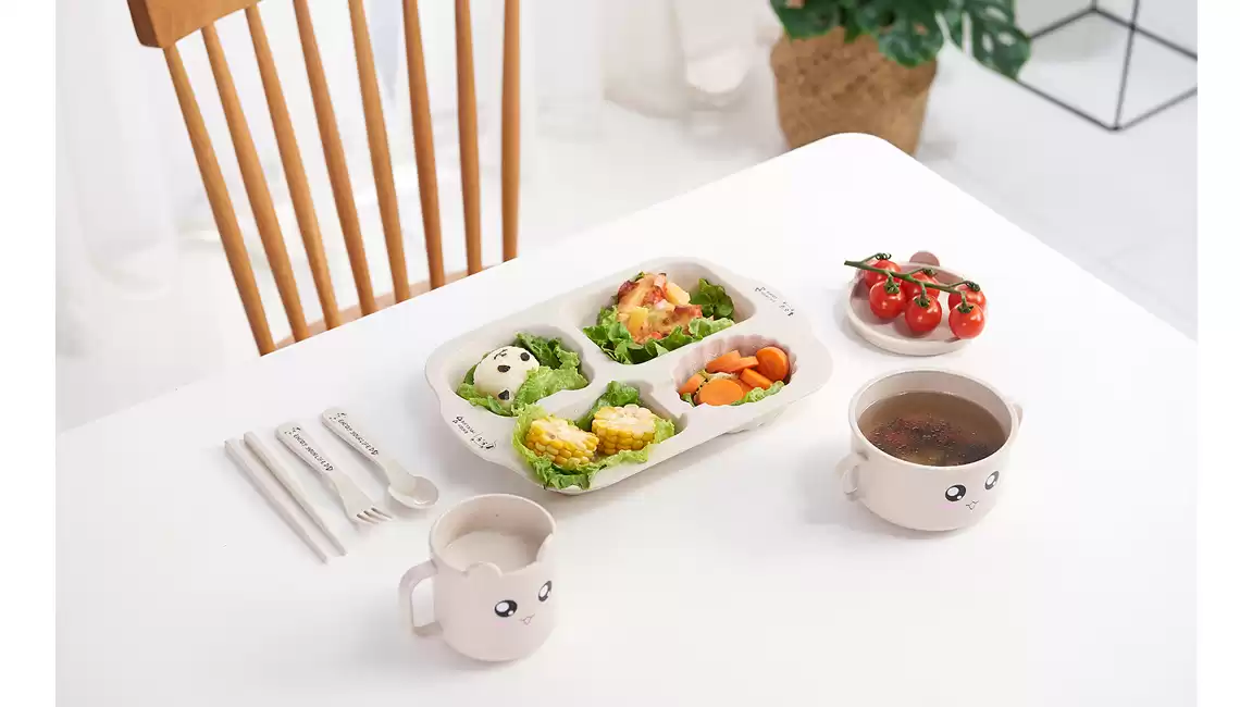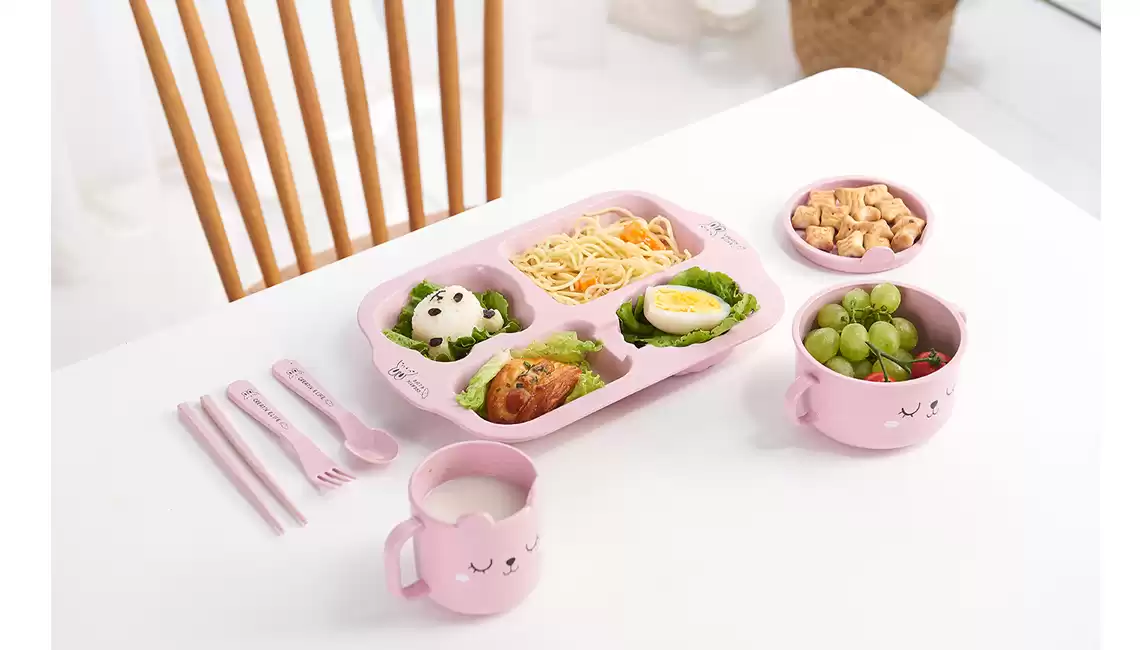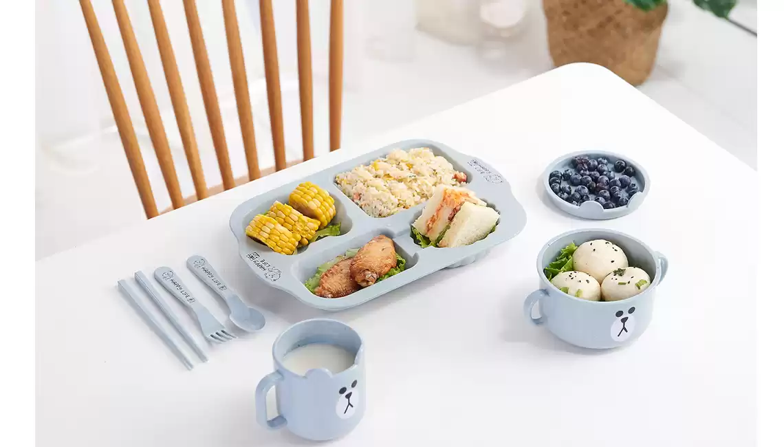 Детский набор для кормления (тарелка, миска, кружка, ложка и вилка) MIX, Модель RC573_WJLTZ11, Материал Пластик