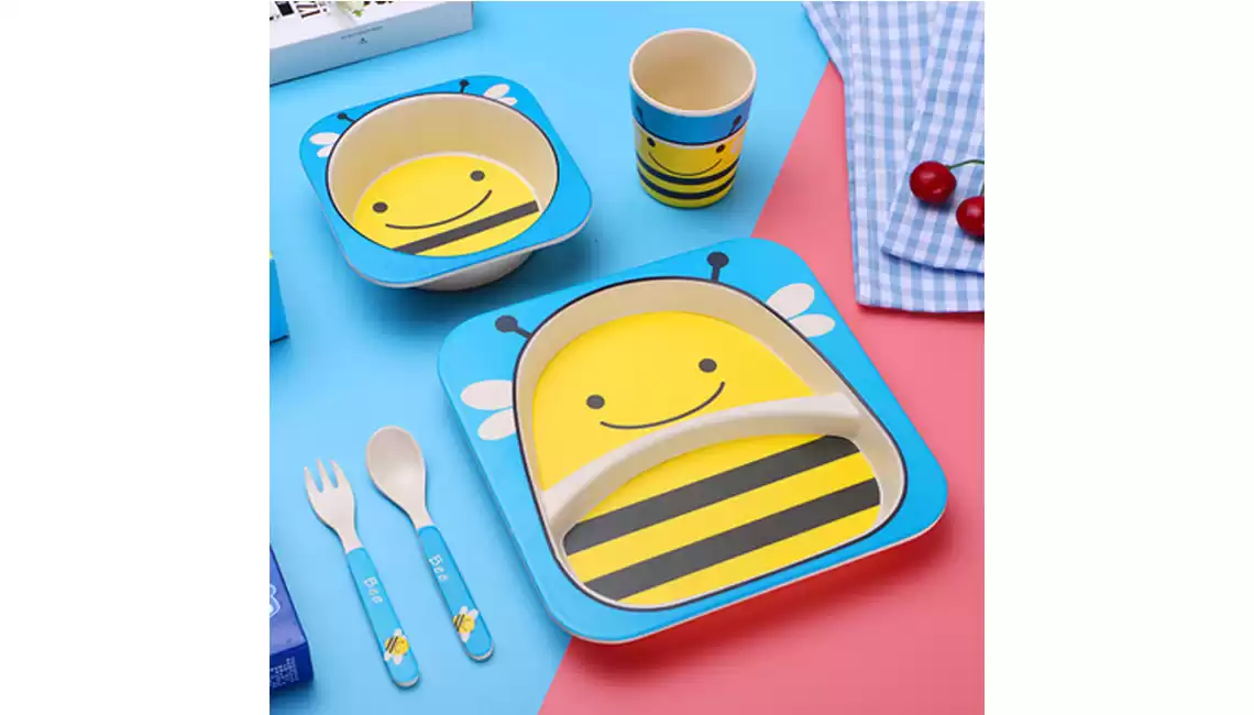 Детский набор для кормления (тарелка, миска, кружка, ложка и вилка) KABEIXIANG, Модель RC573_WKBXZF0013, Материал Бамбуковое волокно
