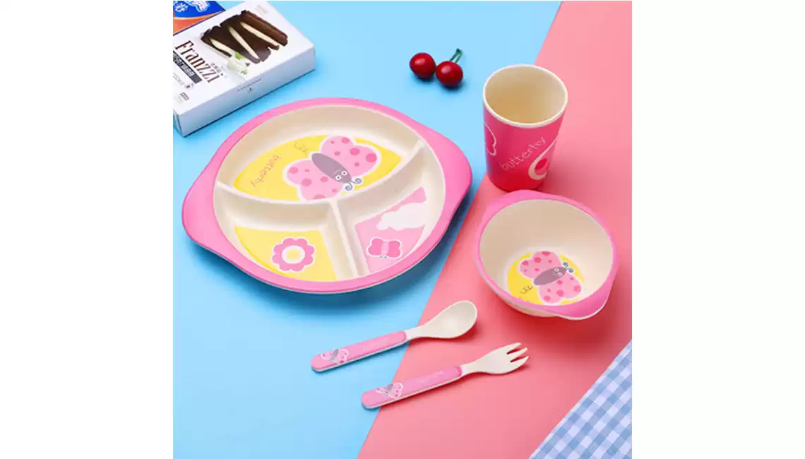 Детский набор для кормления (тарелка, миска, кружка, ложка и вилка) KABEIXIANG, Модель RC573_WKBXZF0026, Материал Бамбуковое волокно