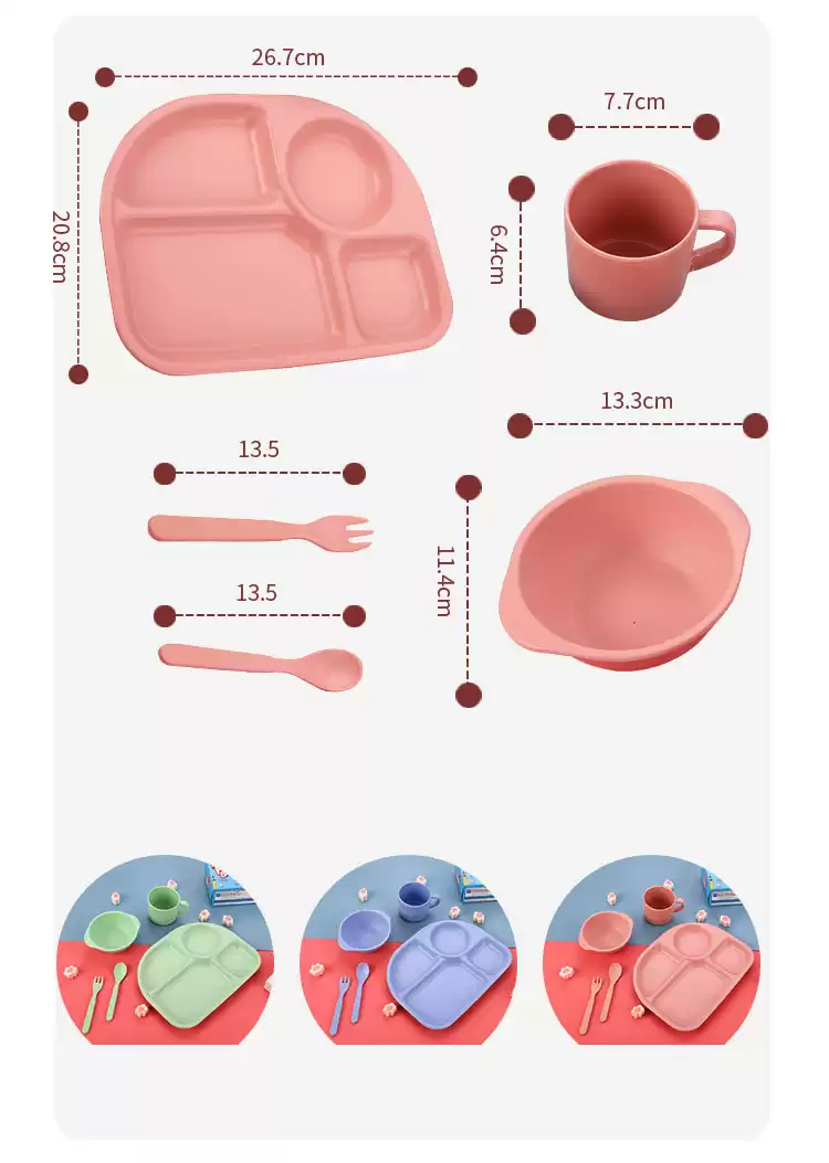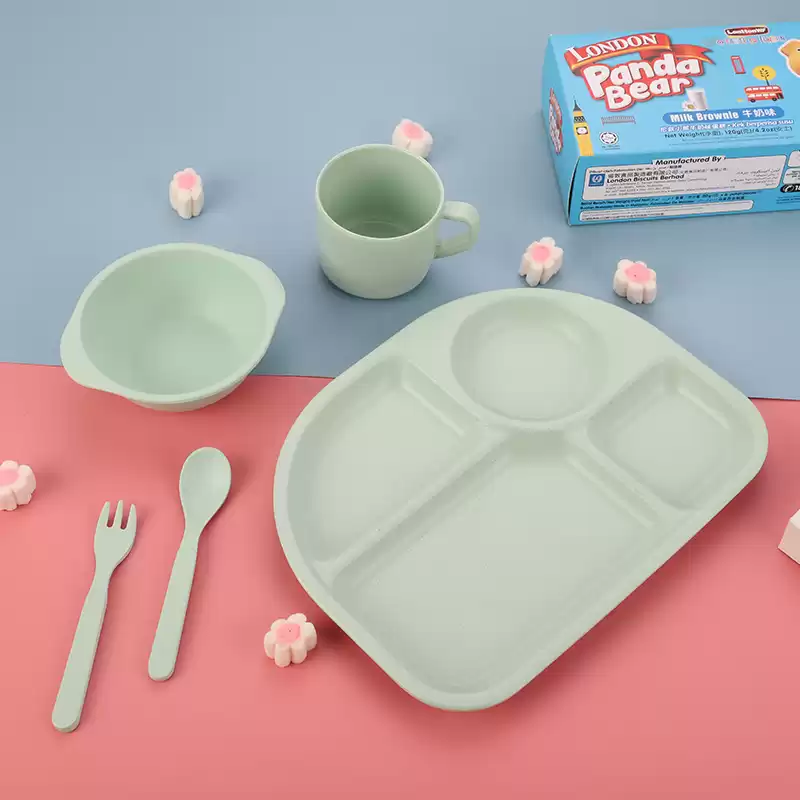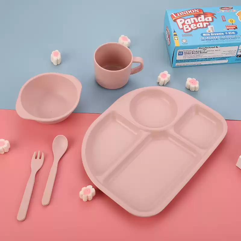 Детский набор для кормления (тарелка, миска, кружка, ложка и вилка) KABEIXIANG, Модель RC573_WKBXZF003, Материал Бамбуковое волокно