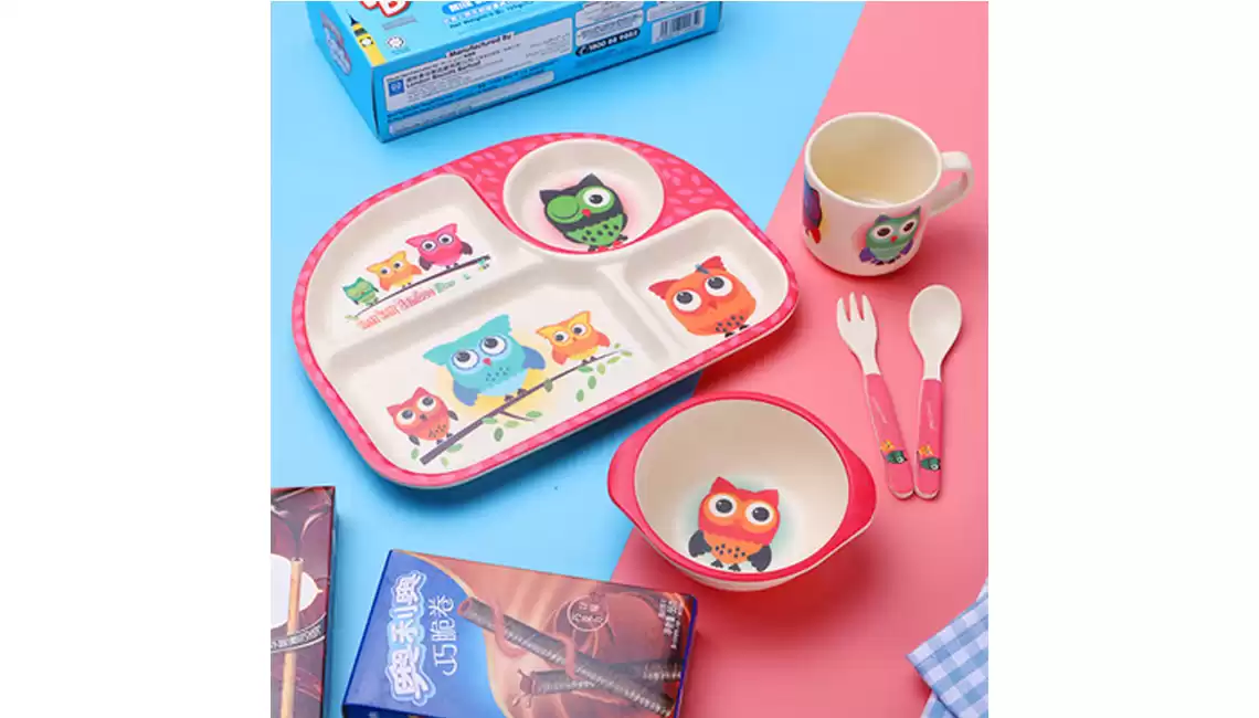 Детский набор для кормления (тарелка, миска, кружка, ложка и вилка) KABEIXIANG, Модель RC573_WKBXZF0037, Материал Бамбуковое волокно