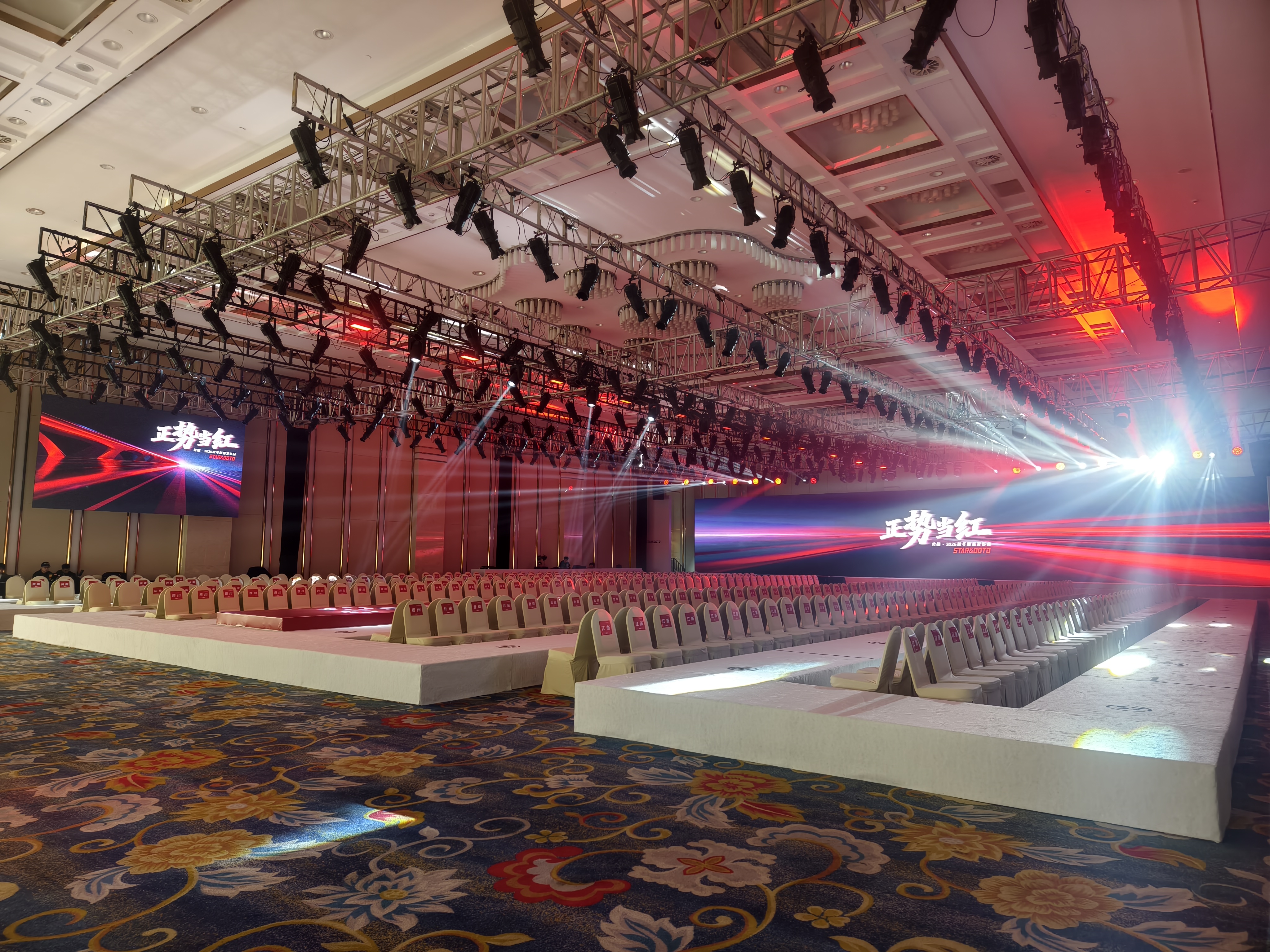 Наши китайские коллеги уже посетили площадку и поделились кадрами подготовки: на локации монтируется подиум, профессиональное световое оборудование и комфортные места для партнеров. Масштаб сцены подтверждает статус события как одного из ключевых в сезоне.